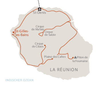 La Réunion - die kleine französische Insel im Indischen Ozean bietet auf engstem Raum unglaubliche Kontraste, die jeden Bergwanderer in ihren Bann ziehen: die drei Cirques im Herzen der Insel verzaubern mit ihrer atemberaubenden, zerklüfteten von dichten Regenwäldern bedeckten Bergwelt. Der Vulkan Piton de la Fournaise versetzt uns mit seiner bizarren Vulkanlandschaft in Staunen. Herrliche Strände an der Westküste laden am Reiseende zum Baden ein. Bei dieser Reise genießen wir in fast allen Unterkünften den Komfort eines Zimmers mit privatem Bad.