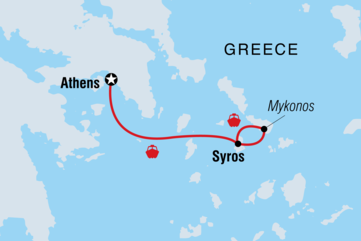 Syros – unbekanntes Juwel in den Kykladen Du bist noch im Bann der Akropolis und den antiken Schätzen Athens, wenn wir im Hafen von Syros anlegen. Die nächsten Tagen tauchst Du in das griechisches Leben auf den Kykladen ein und fühlst Dich in einem komfortablen, familiengeführten Hotel im Herzen von Ermoupoli schon bald als Teil der Insel. Du unternimmst Streifzüge durch die verwinkelten Gassen vorbei an farbenfrohen Villen und imposanten Kirchen. Wandere zu Aussichtspunkten und mach einen Tagesausflug zur glamourösen Insel Mykonos. Und täglich erwarten Dich die mediterranen Köstlichkeiten der griechischen Küche vor der atemberaubenden Kulisse der Ägäis! Warum wir diese Reise lieben Geschichte und Geschichten des antiken Griechenland und das Insiderwissen eines einheimischen Gastgebers bei einem Besuch der weltberühmten Akropolis. Atemberaubende Ausblicke und Inselfeeling auf Wanderungen durch die charmanten Bergdörfer, vom festungsartigen Ano Syros bis zu den Höhlenwohnungen antiker Philosophen. Traditionelle Küche der Insel bei einem Abendessen, einen Sonnenuntergang über der Ägäis und Rembetika-Musik im Hintergrund. Die besondere Atmosphäre von Mykonos bei einem Ausflug spüren. Lerne die bei einem Loukoumia-Kochkurs, wie nach uralten Rezepten die Aromen von Rose, Mastix und Bergamotte zu leckeren Süßigkeiten verarbeitet werden.Passt diese Reise zu Dir?Bitte erkundige Dich nach den Reiserichtlinien für Dein Urlaubsland beim Auswärtigen Amt Deines Heimatlandes, bevor Du diese Reise buchst. Lass Dich nicht von der Hitze davon abhalten, die Welt zu erkunden! In Griechenland können die Sommertemperaturen extrem sein (bis zu 40 ° C), was unangenehm sein kann. Es ist wichtig, Sonnenschutz zu verwenden und viel Wasser zu trinken. Bitte berücksichtige sorgfältig die Jahreszeit, zu der Du reisen möchtest.