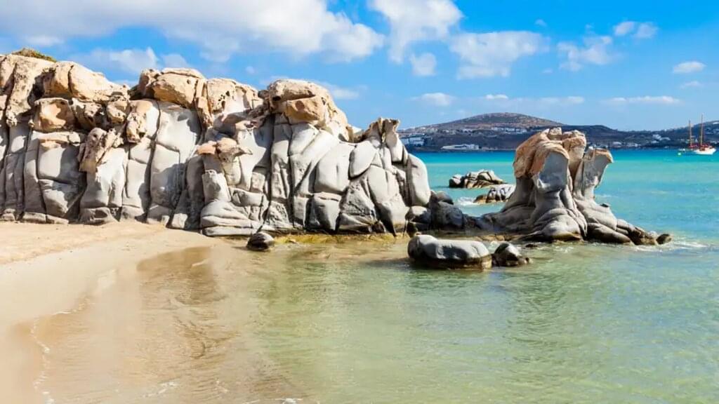 Nach der Übernahme der Leihbikes fahren wir gemeinsam nach Parikia, dem Hauptort der Insel. Besichtigung der ca. 1000 Jahre alten Kirche der hundert Tore und anschließend Bummel durch die verwinkelten Gassen des Kastroviertels. Nach der Mittagspause radeln wir auf wunderschöner Strecke zum Strand von Kolimbithres.