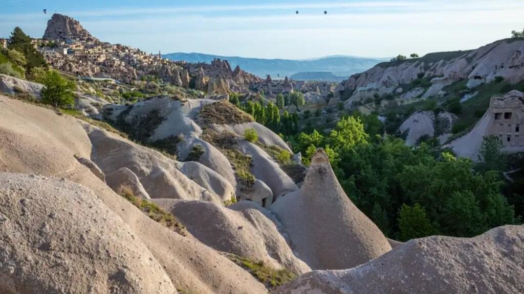 Wanderreise von der Ihlara Schlucht durch die Täler KappadokiensIn den weiten Tälern erheben sich märchenhafte Felsgebilde. Mächtig durchfurcht die Ihlara-Schlucht die karge Landschaft. Pilze aus Tuffstein sprießen aus der Erde, Kamine mit spitzen Schornsteinen ragen in den Himmel und Pyramiden aus Vulkangestein bilden die Kulisse der kargen Mondlandschaft. Es scheint, als lächeln Gesichter von den Felswänden, hinter jeder Windung verbirgt sich der Eingang zu einer Höhle. Das vulkanische Gestein taucht die Landschaft in faszinierende Rot-, Gelb- und Ocker-Töne, am Himmel sorgen Heißluftballons für bunte Farbtupfer. Willkommen in Kappadokien, im Land der Schluchten und Täler, Felsenkirchen und Höhlenstädte. Auf unseren Wanderungen durch die Täler der Region besuchen wir eine der ältesten Höhlenkirchen im Roten Tal, erkunden Uchisar, den höchstgelegenen Ort der Region, und genießen am Abend den traditionellen Testi Kebab. Dabei können wir uns kaum sattsehen an den bizarren Skulpturen, die die Natur geschaffen und die Menschen über Jahrhunderte hinweg geprägt haben. Lassen Sie sich von den Wundern und Märchen Kappadokiens verzaubern!