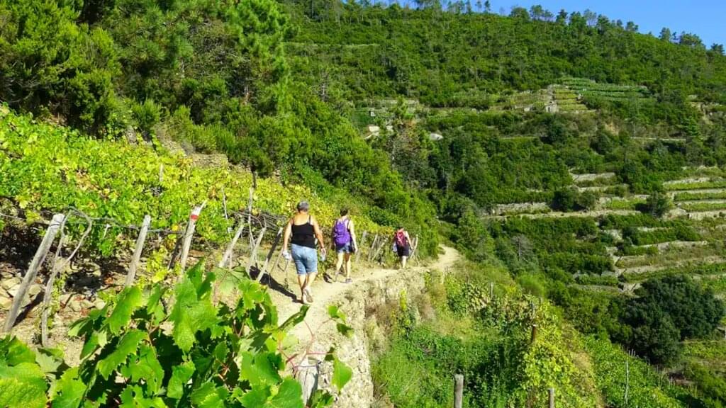 <Mit dem Zug erreichen Sie Riomaggiore. Zunächst führt der Weg durch die steilen Gassen des Küstendorfs, dann vorbei an terrassierten Feldern bergauf zur Wallfahrtskirche Madonna di Montenero. Ein atemberaubender Ausblick über die gesamte Küstenregion ist der Lohn für den etwas mühevollen Aufstieg. Weiter geht es über den Bergkamm Colle del Telegrafo. Durch Weinterrassen und entlang der spektakulären Steilküste folgen Sie einem Wanderpfad nach Campiglia und weiter zum malerischen Küstenort Portovenere. -