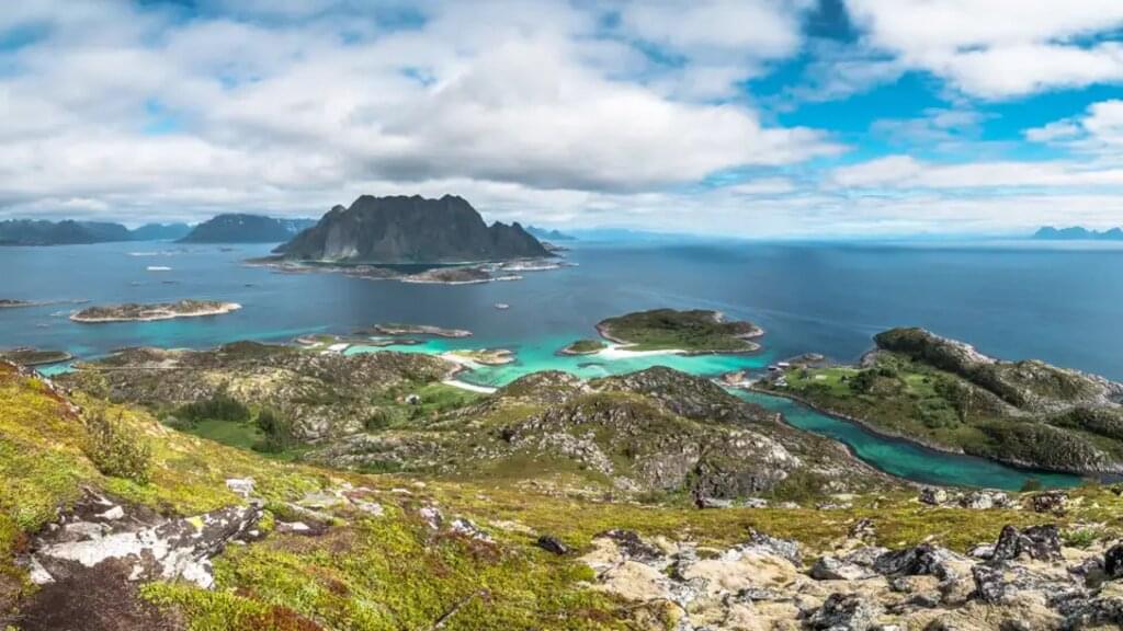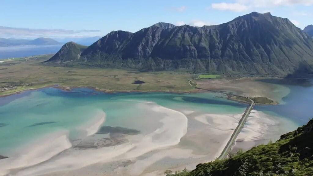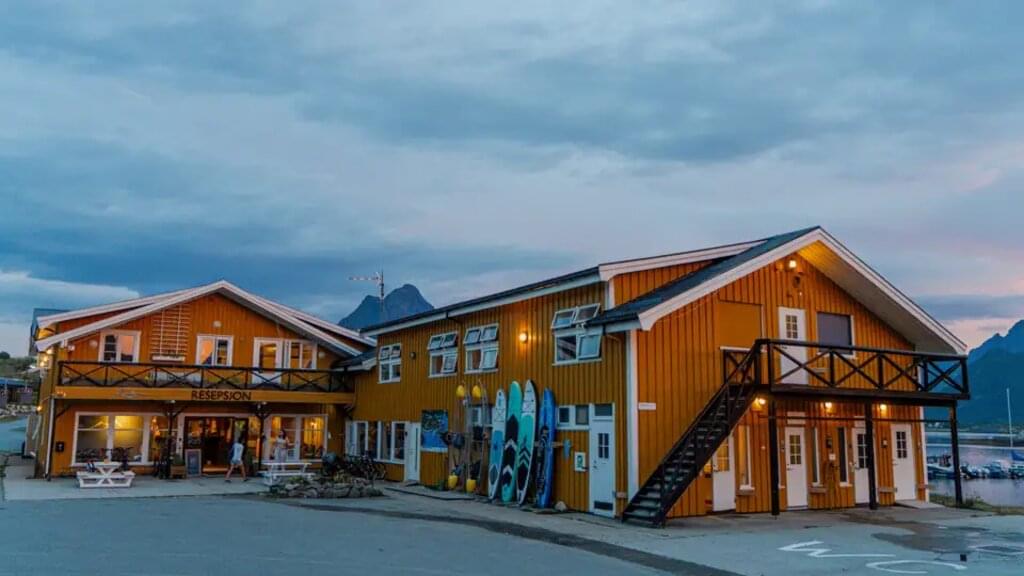 <Heute setzen wir vom nahegelegenen Svolvær mit der Fähre (ca. 30 Min.) über auf die kleine vorgelagerte Insel Skrova. Vom Hafen aus führt uns ein Rundweg über das hügelige grüne Eiland. Wir steigen hinauf zur höchsten Erhebung, der Høgskrova, und lassen den Blick über die kleinen Sandbuchten am türkisfarbenen Meer sowie die gegenüberliegenden Bergzacken schweifen. Danach steigen wir ab zum Socks-Strand. Wer wagt ein Bad im Meer bevor uns die Fähre wieder zurück bringt? Je nach Fährzeiten bleibt uns vielleicht noch etwas Zeit für einen Bummel durch die Gassen von Svolvær. -