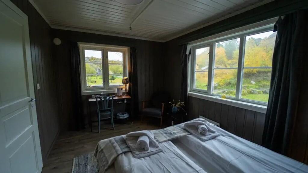 <Nach der gestrigen langen Anreise starten wir heute in der näheren Umgebung. Wir steigen über einen Schotter- und Wiesenweg auf, bis wir schließlich in gerölligere Regionen kommen. Ein letzter steiler Steig führt uns zum Gipfel des Glomtinden (309 m). Weniger grün, dafür umso aussichtsreicher: Vom Plateau aus blicken wir in alle Richtungen über die fantastische Wasserwelt des Vestfjord und auf den mächtigen Vågakallen! Nach einer ausgiebigen Pause wandern wir zurück. Wie wäre es mit einem Saunagang oder Entspannen im Hot Tub am Abend - Fjordblick inklusive! -