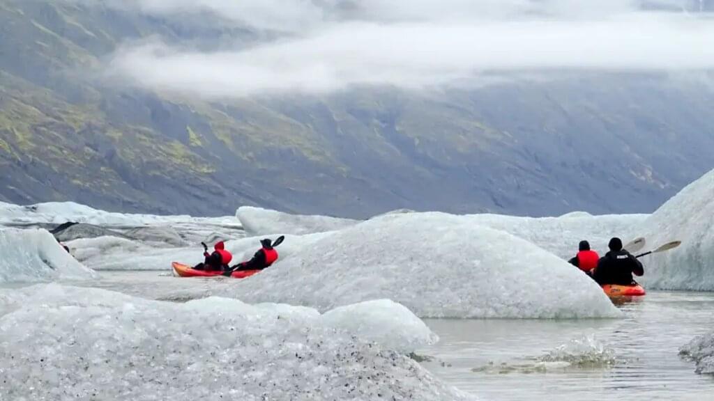<Heute haben wir verschiedene Optionen unseren Tag im Nationalpark Vatnajökull zu gestalten. Wer möchte, kann morgens eine geführte Gletscherwanderung auf einer der Zungen des Vatnajökull unternehmen (fakultativ, Gehzeit ca. 3 Std.). Wer lieber individuell die grandiose Natur und Gletscherlandschaft entdecken möchte, geht direkt vom Gästehaus aus auf einem ausgeschilderten Wanderweg zu einer einsamen Gletscherzunge und einem Gletschersee des Vatnajökull (Gehzeit ca. 3 - 4 Std.). Oder wir lassen den Tag einfach ruhig angehen, genießen die herrliche Landschaft von der Terrasse aus und lassen die Seele baumeln. Am frühen Nachmittag fahren wir zur berühmten Gletscherlagune des Jökulsárlón mit ihren blau schimmernden Eisbergen. Ganz in der Nähe am Diamond Beach werden häufig kleine Eisberge, die aus der Gletscherlagune ins Meer treiben, an den schwarzen Strand gespült. Ein fantastisches Bild, wie Diamanten am Strand! Hier haben wir viel Zeit zwischen dem Eis und entlang der Lagune zu laufen. Zusätzlich haben wir die Gelegenheit ins Kajak zu steigen. Durch die Eisberge hindurch führt die Kajak-Tour auf dem See näher an die Gletscherkante heran (fakultativ, ca. 1 Std.). Nach diesem spannenden und vielfältigen Tag kehren wir abends in unser Gästehaus zurück. -