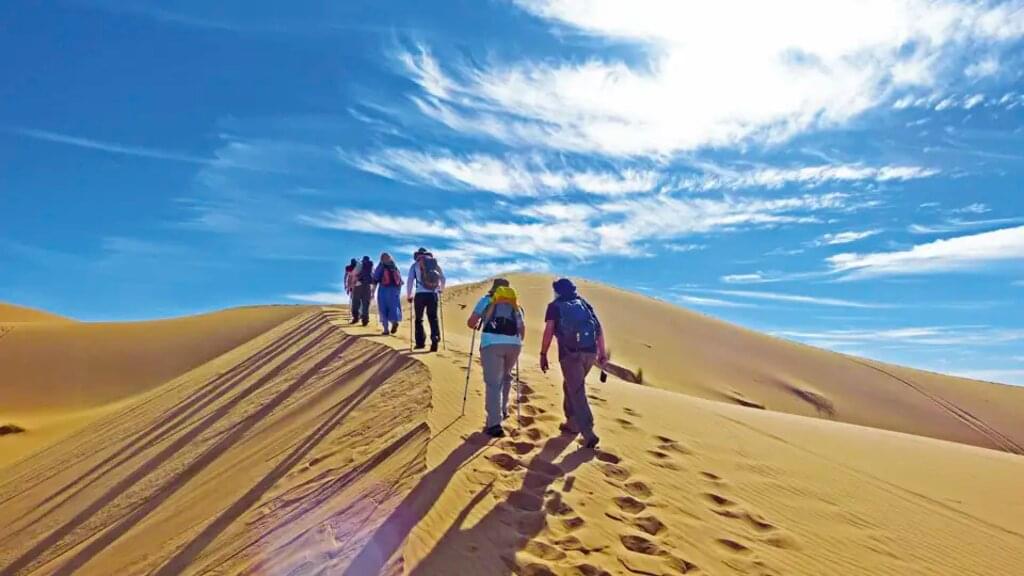 Trekkingreise durch Königsstädte, Wüste, Oasen und den Hohen AtlasDie Königsstädte Rabat und Meknès beeindrucken mit kunstvollen Kasbahs, mit von Mosaiken geschmückten Palästen und imposanten Stadttoren. Fès verzaubert mit seiner riesigen, mittelalterlichen Medina, den Handwerksstätten und verwinkelten Gassen. Ein Wüstencamp zwischen den Dünen bietet ein unvergessliches Erlebnis mit Sonnenaufgang und Wüstenluft. Die Oasengärten im Tal der Rosen und die Straße der 1.000 Kasbahs mit ihren aus Stampflehm erbauten Festungen, deren Baustil von jemenitischen Arabern stammen soll, sind weitere Highlights. Besonders beeindruckend ist Ait Benhaddou, die UNESCO-geschützte Lehmburg und bekannter Filmschauplatz. Hier fühlen wir uns wie in eine andere Zeit versetzt – die Szenerie diente bereits zahlreichen Hollywood-Produktionen als Kulisse. Im Hohen Atlas trekken wir mit Maultieren zum Djebel Toubkal (4.167 m). Wer nicht so hoch hinaus möchte, wandert auf Eselspfaden nach Aremd, vorbei an Berberdörfern und Terrassenfeldern mit atemberaubenden Ausblicken. Marrakech, eine Stadt voller Sinneseindrücke und die letzte der Königsstädte, rundet die Reise ab. Hier erkunden wir farbenfrohe Souks, erleben den lebendigen Djemaa el-Fna mit Gauklern und Musikern und spazieren durch prachtvolle Gärten wie den Jardin Majorelle – ein idealer Abschluss einer faszinierenden Reise.