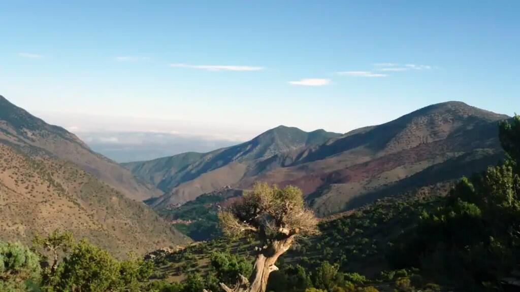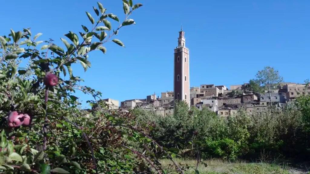 <Nach dem Frühstück teilen die Mulitreiber unser Hauptgepäck sowie die Koch- und Campingausrüstung auf und beladen die Tragtiere. Wir brechen zum Tizi Oudite (2.220 m) auf (Tizi = Bergpass). Die Etappe (ca. 2 Std.) führt durch Mischwälder mit Wacholder- und Eichenbäumen. Von der Passhöhe steigen wir in das Dorf Ait Aissa (1.700 m) ab. Nach der Mittagsrast unter Walnussbäumen zieht sich die Strecke am Ouissadene-Bach entlang an dessen Ufern seltene Pflanzen gedeihen. Wir streifen durch Bergdörfer, die an den Hängen angelegt sind und schöne Fotomotive hergeben. Entlang Bewässerungskanälen wandern wir bergauf in ein Gebiet mit knorrigen Wachholderbäumen. Schließlich erreichen wir unser Camp bei Azib Tamsoult (2.250 m). Wer mag, kann am Nachmittag noch zu einem kleinen Wasserfall weiterwandern (ca. 1,5 Std. hin und zurück). -