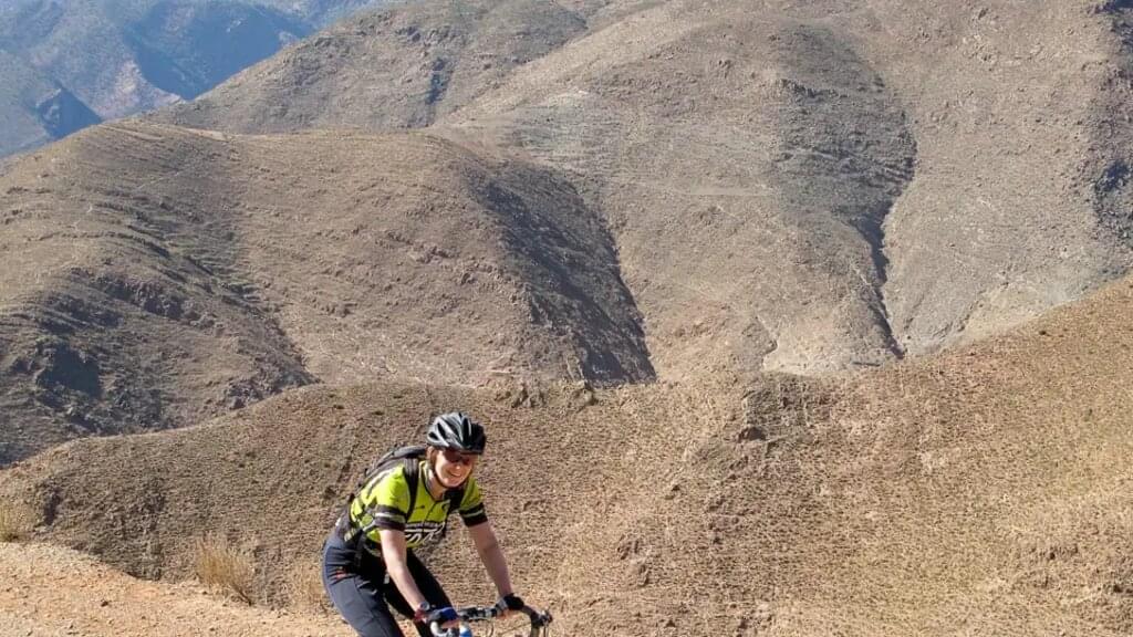 <Diejenigen, die Fahrräder gemietet haben, holen sie heute morgen ab. Nach dem Beladen des Begleitfahrzeugs fahren wir auf der Hauptstraße von Marrakesch in Richtung Ouarzazate. Wir sind schnell bei den Ausläufern des Atlas-Gebirges und überqueren den Tizi n'Ait Imguer Pass (1.470 m), der eine regelmäßige Sonntagmorgen-Herausforderung für lokale Marrakesch-Rennradfahrer darstellt. Nach nur 2 Stunden Fahrt erreichen wir die kleine Stadt Taddert (1.670 m), den Ausgangspunkt unserer ersten Ausfahrt. Hier können wir aus einer Reihe exzellenter Cafés auswählen, in denen wir eine Tasse Kaffee oder Coca Cola trinken können, oder sogar ein Ei und Tomaten-Tajine, um uns für die Fahrt vorzubereiten. Etwas außerhalb der Stadt ist ein großartiger Rastplatz, wo wir unsere Fahrräder ausladen können. Dieser erste Radtag beginnt mit einem stetigen 1-stündigen Anstieg zum Tizi n'Tichka (2.260 m). Auf dem Pass genießen wir eine herrliche Aussicht und nützen die Gelegenheit für beeindruckende Fotos, bevor wir mit der Abfahrt beginnen. Nach einer kurzen Abfahrt biegen wir von der Hauptstraße (N9) ab und radeln auf einer hügeligen Straße 20 Kilometer in östlicher Richtung zur Stadt und Kasbah von Telouet, wo wir in einem Café zum Mittagessen anhalten. Die Straße führt weitere 10 Kilometer weiter nach Osten und biegt dann bei Anmiter abrupt nach Süden ab, um dem malerischen Tal des Asif Ounila zu folgen, wo es für den Rest der Tagesetappe überwiegend bergab geht. Die Route führt durch eine malerische Landschaft mit mehreren Berberdörfern, Palmenhainen und Kasbahs, einschließlich des berühmten Ait Benhaddou. Es erwartet uns eine fantastische 60-Kilometer-Fahrt von Anmiter zu unserem heutigen Etappenziel in Ouarzazate (1.160 m). -