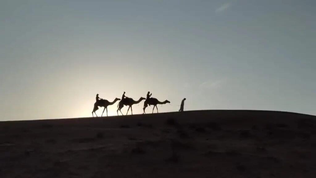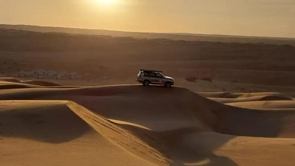 Beginn des Trekkings: Sonnenuntergang in der Wüste Rub Al-Khali