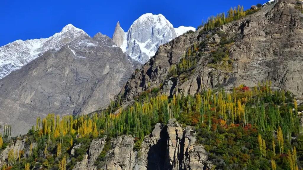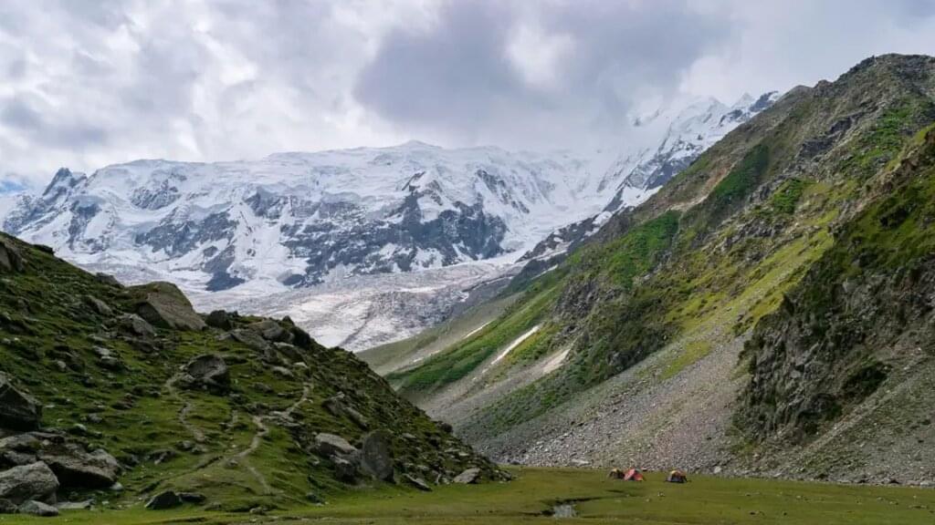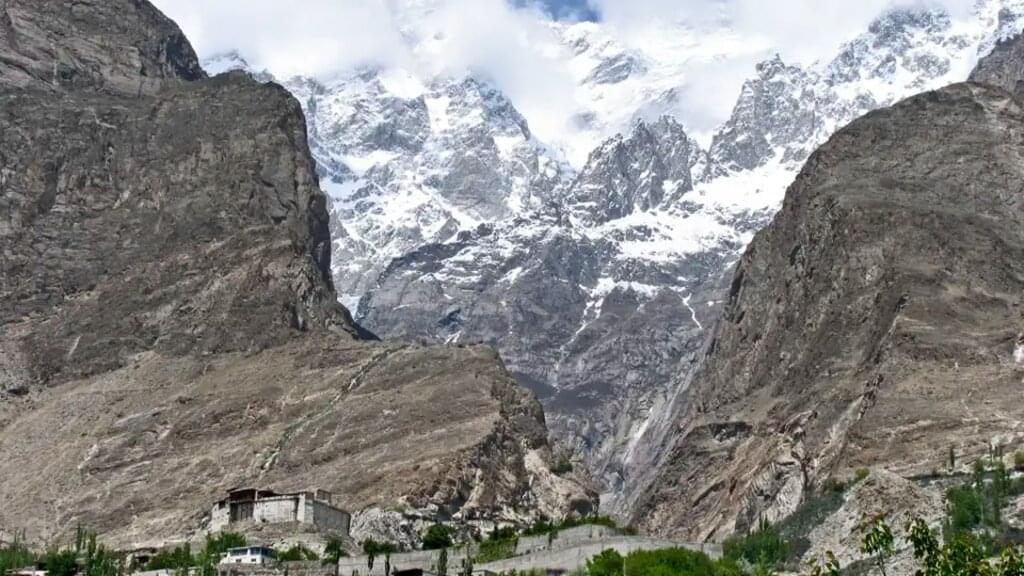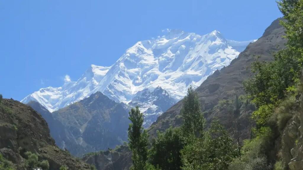 <Nach dem Frühstück im Camp steigen wir auf zum Basislager des Rakaposhi (3.450 m) und damit noch näher heran an den Gletscher und die über uns aufragenden Gipfel des Diran (7.266 m) und Rakaposhi (7.788 m). Am Basislager legen wir eine Pause zum Mittagessen ein und machen uns danach auf den Rückweg nach Minapin. Von hier aus fahren wir nach Karimabad. -