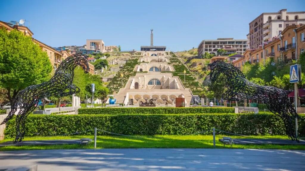 <Nach Ankunft in Jerewan werden wir zu unserem Hotel gebracht und haben Zeit uns auszuruhen. Nach einem späten Frühstück begeben wir uns auf einen Spaziergang durch die Innenstadt. Eine bunte Mischung aus Jugendstilgebäuden, kleinen Obstbuden, zwischen sowjetischen Hochhäusern versteckten Kirchen und modernen Fassaden erwartet uns. Von einem Aussichtspunkt aus können wir bei klarem Wetter in der Ferne den mächtigen Berg Ararat (5.137 m) mit seiner weißen Schneekappe hinter dem Stadtpanorama sehen. Außerdem besuchen wir das beeindruckende Museum Matenadaran mit seiner einzigartigen Sammlung von uralten Manuskripten. Im Genozidmuseum und an der Gedenkstätte für die Opfer des Völkermords erhalten wir einen Einblick in die armenische Geschichte und am Abend speisen wir in einem lokalen Restaurant. -