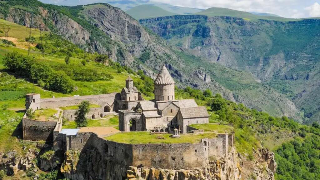 <Eine etwa halbstündige Fahrt bringt uns nahe an das verlassene, alte Dorf Khot heran. Auch als "das armenische Machu Picchu" bezeichnet, liegt es terrassenförmig auf einem natürlichen Plateau am Grund der mystischen Vorotan-Schlucht. Wir steigen hinab, spazieren über verschlungene Pfade vorbei an den Ruinen alter Wohnhäuser und spähen hinein in die zahlreichen Felswohnungen und Höhlen, die in die Hänge der Schlucht gegraben wurden. Brombeerbüsche und wilde Hyazinthen wachsen zwischen den verfallenen Mauern und Treppen. Nachdem wir unserem Entdeckerdrang ausgiebig nachgegangen sind, verlassen wir den Ort in südwestlicher Richtung und wandern über das ebenfalls verlassene Dorf Shinuhayr inkl. Picknickstopp bis nach Halidzor. Dort befindet sich ganz in der Nähe ein weiteres Highlight des Tages. Die 5,7 km lange Luftseilbahn "Wings of Tatev" bringt uns hinüber zum Kloster Tatev. In etwa 1540 m Höhe bewegen wir uns so in ca. 11 Minuten über die Schlucht des Vorotan und genießen den Ausblick aus der Luft. Im Mittelalter war das Kloster Tatev eines der wichtigsten Zentren der armenischen apostolischen Kirche, armenischer Wissenschaft und Bildung. Durch seine strategisch günstige Lage hoch über dem Canyon war es geschützt und kaum erreichbar. Für die Besichtigung des Klosterkomplexes lassen wir uns Zeit. Danach verabschieden wir uns vom Süden des Landes und fahren Richtung Norden nach Yeghegis. -