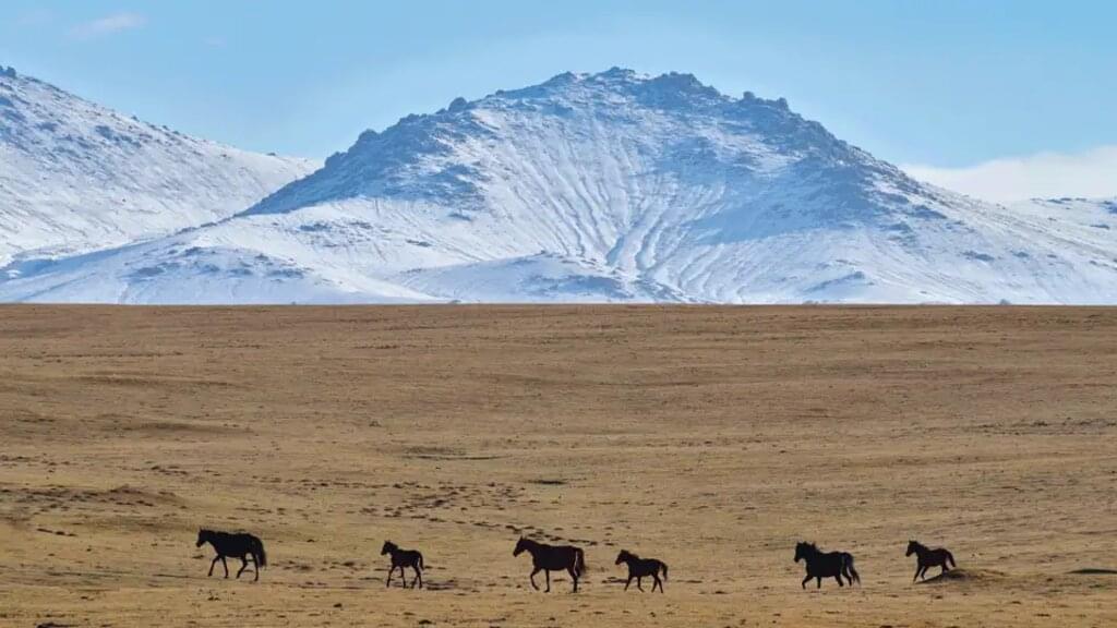 <Mit der Singenden Düne und den Aktau-Bergen stehen heute die Wahrzeichen des Altyn-Emel-Nationalparks auf dem Programm. Kurz bevor wir die Düne erreichen, stoppen wir in Myngbulak, übersetzt "Tausend Quellen". Eine Trinkwasserquelle tritt hier aus dem Boden und liefert Vegetation die Chance in der kargen Wüstenlandschaft zu überleben. Die 180 m hohe und über drei Kilometer lange Sanddüne schiebt sich dann ganz plötzlich in unser Blickfeld. Wir steigen hinauf und genießen die herrliche Aussicht auf den Fluss Ile, die umliegenden Berge und die Düne selbst. Wind aus Westen entlockt der Düne Ihren Gesang, aber auch unsere Schritte über ihren Kamm lösen das Phänomen aus. Nach einem Picknick fahren wir weiter in den östlichen Teil des Nationalparks zu den farbenprächtigen Aktau-Bergen. Weiße Sedimentschichten wechseln sich mit roten und gelben Streifen ab. Wir wandern entlang der beeindruckenden Felsformationen und malen uns aus, wie sich vor Millionen von Jahren hier ein Ozean erstreckte. Bevor wir nach Basshi zurückkehren, legen wir noch einen Stopp an einer 700-jährigen Weide ein. Die mächtigen Äste des Baums streben in alle Himmelsrichtungen und müssen aufgrund ihres Gewichts gestützt werden. -