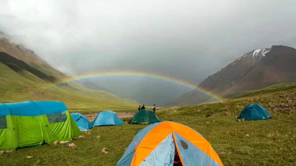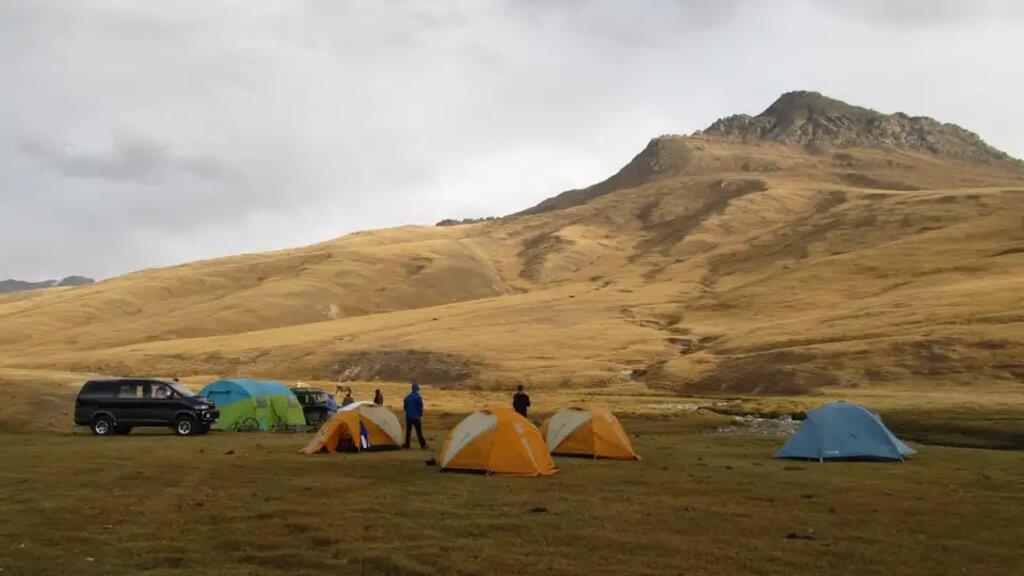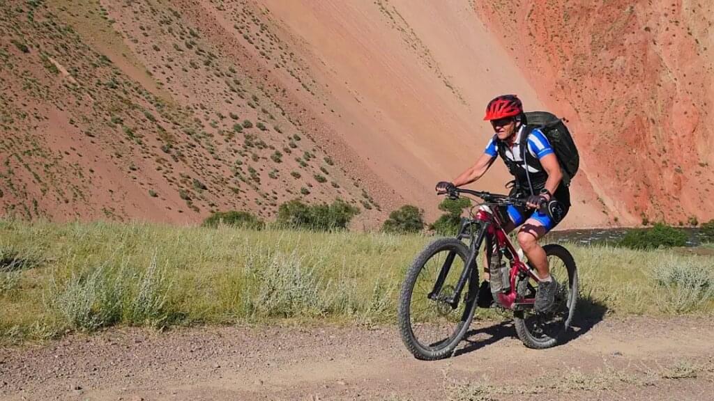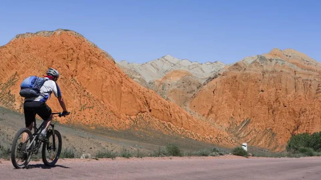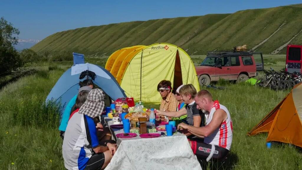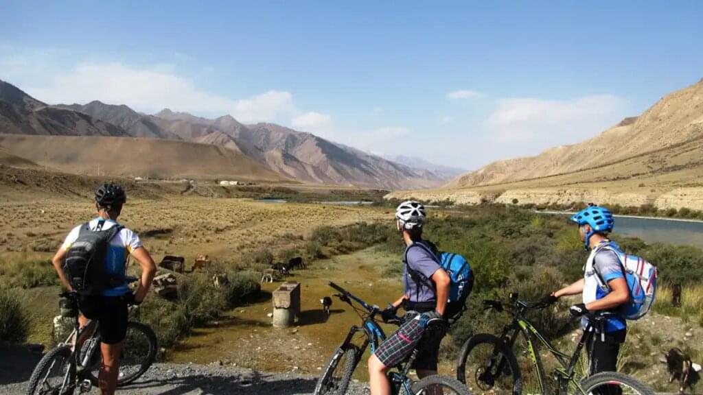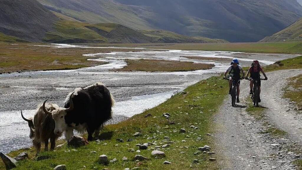 <Nach dem Frühstück beginnt unsere erste Bike-Etappe und führt uns die Straße entlang Richtung Karakolpass (3485 m). Die Karakolschlucht ist eine sehr schöne und malerische Region mit unterschiedlicher Flora. Wir fahren größtenteils auf Schotterwegen. Inmitten dieser markanten Landschaft werden wir bei einer Mittagsrast mit Kaffee, Tee, frischen Früchten und einer kleinen Mahlzeit versorgt. Am Ende unserer Etappe errichten wir unsere Zelte und genießen den Tagesausklang umrahmt von vier- bis fünftausend Meter hohen Gipfeln. -