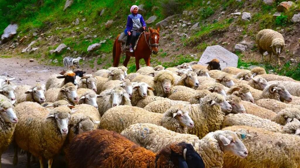 <Wir starten heute sehr früh und verlassen die Stadt mit dem Fahrzeug. Die Strecke führt entlang von Feldern und Flüssen und bei gutem Wetter erblicken wir bereits die schneebedeckten Berge des Tien-Shan. Nach rund 2 Stunden erreichen wir Burana. Der Turm aus dem 10. Jh. ist eines der ältesten Bauwerke Zentralasiens und heute ein Museum, das dem Karakhaniden Khanat gewidmet ist. Auf einer Wendeltreppe gelangt man auf den rund 26 m hohen Turm mit einem schönen Ausblick. Die Weiterfahrt führt durch eine kleine Dörfer bis zu unserem Übernachtungsplatz auf rund 1.700 m Höhe. -