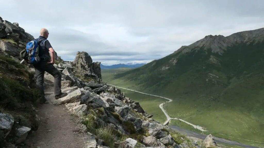 <Wir verlassen den Denali Highway und folgen dem gleichnamigen Highway, einer 200 km langen Wildnispiste, die zu den landschaftlich eindrucksvollsten Straßen Alaskas gehört. Sie führt uns durch eine wilde unberührte Gebirgswelt mit fantastischen Blicken auf die schneebedeckten Gipfel der Alaska Range. Zahlreiche Seen und Gletscherflüsse prägen die Landschaft und bilden einen optimalen Lebensraum für Biber, die hier zahlreiche Dämme bauen. Elche und Karibus sind oftmals in den Ebenen zu erspähen. Vielen verschiedenen Zugvögeln (Seeschwalben, Eistaucher, Kraniche, Gänse, Schwäne etc.) dient diese Region während der Sommermonate als Nist- und Brutplatz. Bei frühzeitiger Ankunft besteht die Möglichkeit für eine Wanderung in dieser einzigartigen Wildnis. Wir begeben uns auf den McLaren Summit Trail und können eindrucksvolle Blicke auf die Alaska Range genießen. -