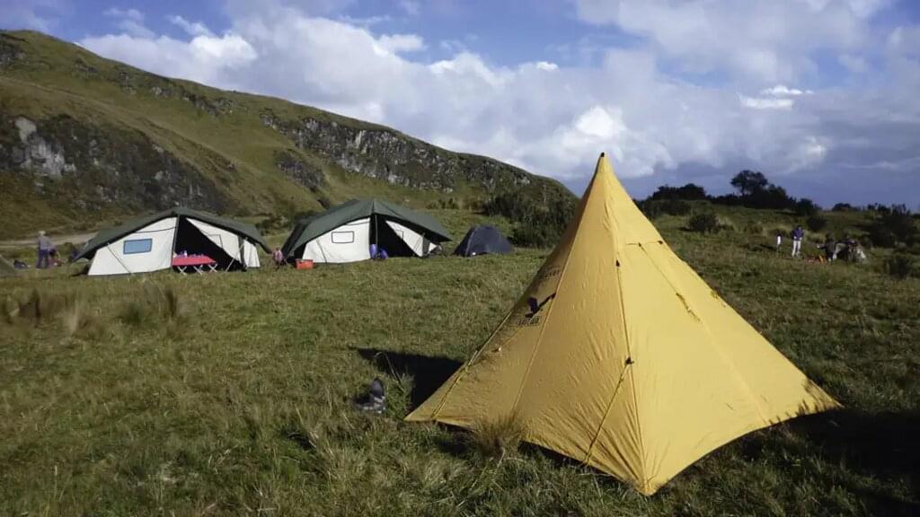 <Heute fahren wir auf der berühmten Avenida de los Volcanes, der "Straße der Vulkane", in Richtung Süden. Unterwegs zeigen sich bei sonnigem Wetter die strahlenden Gipfel von Cotopaxi, Illiniza Norte und Illinaza Sur am Horizont. Über eine Schotterstraße fahren wir zu unserem heutigen Ausgangspunkt auf ca. 3.500 m Höhe am Fuß der Illinizas und steigen auf zu unserem Lagerplatz, "Camp La Virgen" genannt (ca. 4.000 m). Uns erwartet eine eher leichte und entspannte Wanderung zum Lagerplatz. Das Gepäck wird mit dem Auto transportiert. Am Nachmittag können wir noch eine Akklimatisationswanderung unternehmen. -