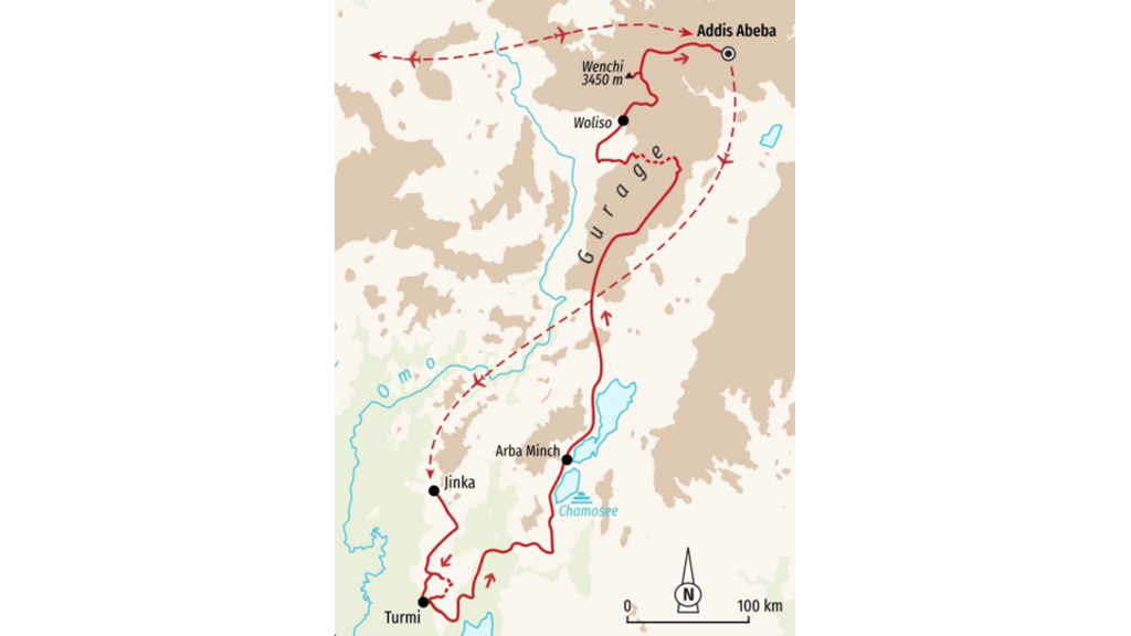Unsere lokale Partneragentur in Äthiopien teilt unsere Philosophie für nachhaltigen Tourismus und wurde 2023 mit dem Travelife-Nachhaltigkeitssiegel ausgezeichnet. Zu den Werten unserer Partner gehören der Schutz des kulturellen und natürlichen Erbes, faire Bezahlung aller Leistungsträger und artgerechte Behandlung der Lasttiere. Informationen zu diesem Siegel finden Sie im Internet unter: www.travelife.info. Das Community Trekking in Gurage (Tag 9-13) wurde von unserer lokalen Partneragentur selbst erkundet und entwickelt.