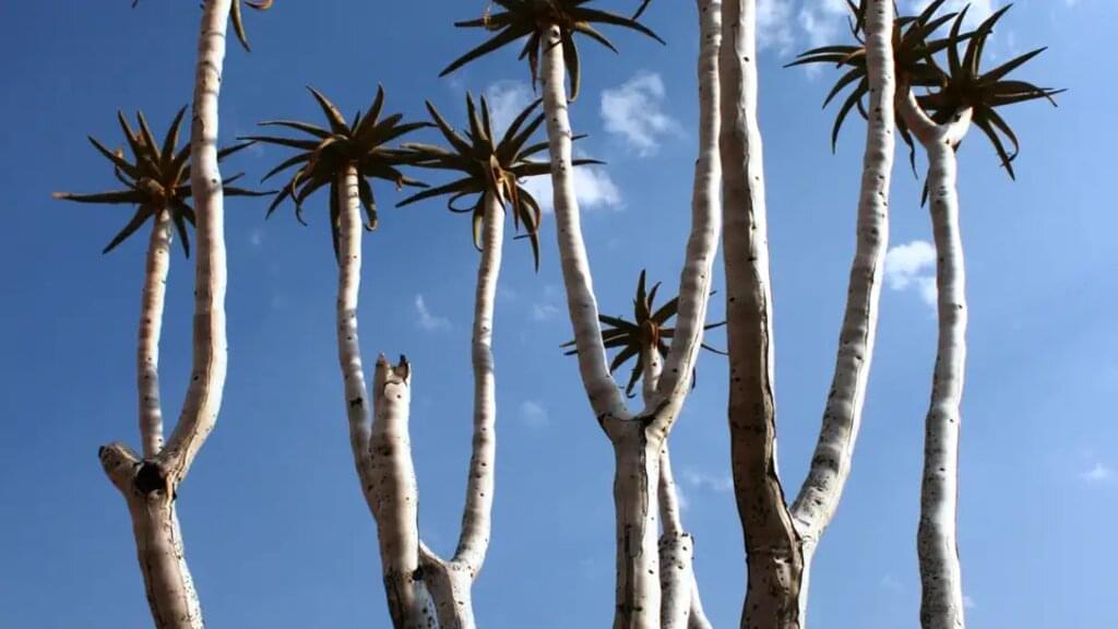 <Am Morgen wandern wir durch den roten Sand der Kalahari. Sie erstreckt sich vom Südosten Angolas über den Osten Namibias und den Westen Botswanas bis in den Norden Südafrikas. Damit ist sie die größte zusammenhängende Sandfläche der Welt und für heute Vormittag unser Wandergebiet. In den knorrigen Kameldornbäume hängen die Bauten der geselligen Webervögel und Strauße sind meist auch unterwegs. Gegen Mittag fahren wir über Mariental zum Köcherbaumwald. Köcherbäume sind im ganzen Land zu finden, aber nirgends in so einer großen Anzahl wie hier. Beim Sonnenuntergang bieten die Köcherbäume hervorragende Fotomotive. -