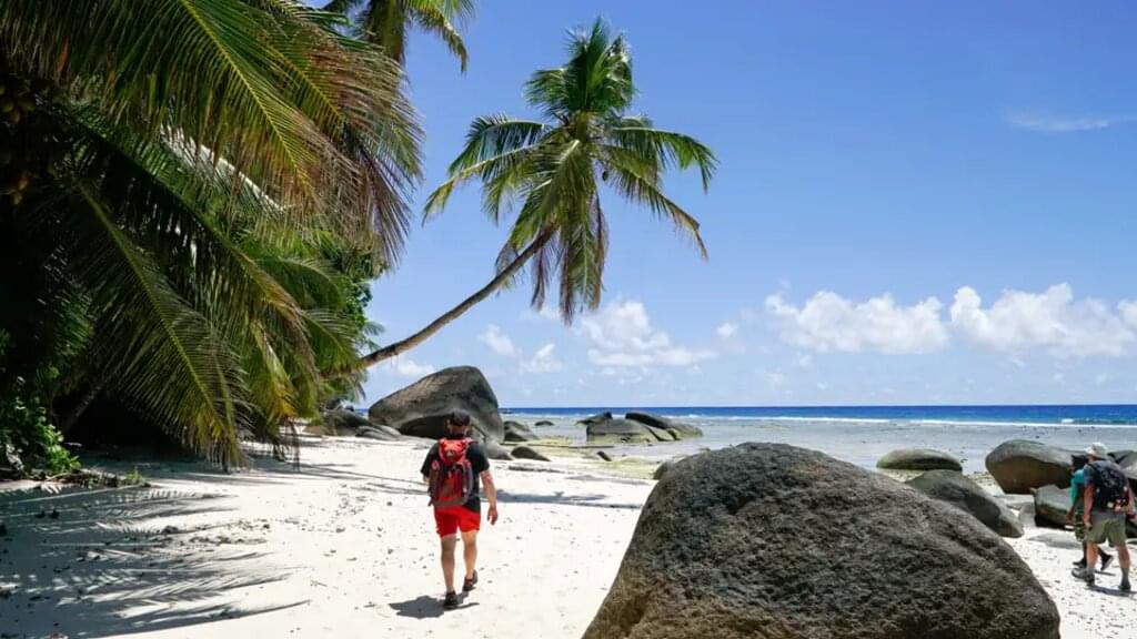 Wanderreise durch die Inselwelt von Mahé, Praslin und La Digue mit Zeit zum Baden und SchnorchelnWir wandern entlang tropisch-grüner Pfade durch das Inselinnere zur Küste, wo die sanften Wellen des türkisfarbenen Indischen Ozeans leise auf den schneeweißen Sandstrand treffen. Formschöne Granitfelsen liegen im Schatten der Palmen. Barfuß spüren wir den weichen Sand unter unseren Füßen, eine leichte Brise mildert die tropische Wärme. Nach der Wanderung erfrischen wir uns im Meer – die Badesachen sind im Rucksack. Auf Mahé, Praslin und La Digue führen uns abwechslungsreiche Wege durch dichte Regenwälder, geschützte Naturparks und artenreiche Schutzgebiete. Wir bestaunen endemische Pflanzen wie die Coco de Mer, die Riesenkokosnuss der Seychellenpalme, kosten süße Früchte und bewundern die bunte Blütenpracht. Am Strand beobachten wir die kreisenden Vögel und freuen uns beim Schnorcheln über die farbenfrohen Fische. Mit etwas Glück sehen wir Wasserschildkröten; Riesenschildkröten an Land begegnen uns sicher. Wir wandern und radeln entlang der Küste und fahren zum Sonnenuntergang mit dem Boot auf das Meer und zu den kleinen Inseln Curieuse und Cousin. Lokale Köstlichkeiten mit saftigem Obst und fangfrischen Meeresfrüchten verwöhnen uns täglich und wir genießen die Traumstrände.