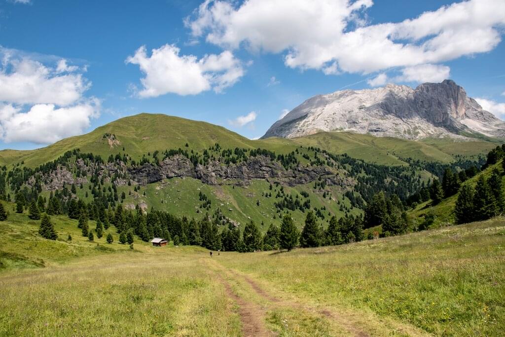 <Dieser Weg begeistert – von der Hütte zum Passo di Dona (2.516 m). Abstieg ins Valle di Duron zur Malga Docoldaura (2.046 m), dann Aufstieg über das Mahlknechtjoch (2.187 m) zur Tierser Alpl Hütte (2.440 m). -