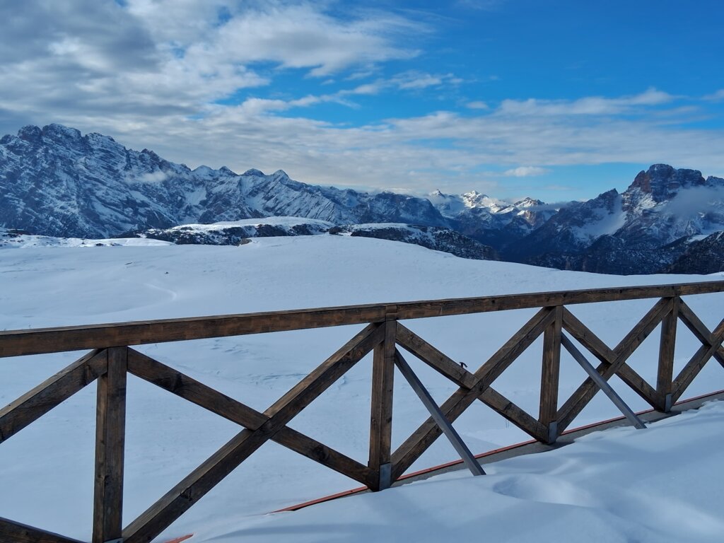 <Eine erste Wanderung durch Wälder Richtung Seikofel (1.908 m) zeigt uns die winterliche Schönheit der Umgebung unweit des Kreuzbergpasses. Abstieg zur Nemes Alpe (1.880 m). Einkehr beim Ziehharmonika spielenden Wirt. Toller Blick auf die Sextener Dolomiten. Zurück im Hotel können wir es uns in Sauna und Hallenbad gut gehen lassen.