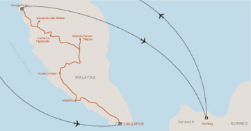 Mitten im Herz Malaysias erleben wir einen Mix aus Natur, Kultur und Genuss - von pulsierenden Städten bis zu unberührter Natur. Wir wandern durch üppige Regenwälder, erkunden geheimnisvolle Tempel-Höhlen und begegnen Orang-Utans auf Borneo hautnah. Die kühlen Cameron Highlands locken mit weiten Tee- und Gemüseplantagen, während wir in Malakka das koloniale Flair der alten Handelsstadt spüren. Abseits der Touristenpfade erleben wir echte Tradition: Kochkurse im Gewürzgarten, Batik-Kunst und Übernachtungen in einem Langhaus bringen uns das Land authentisch nahe. Eine Reise voller Kontraste, die Natur, Kultur und Abenteuer perfekt vereint.
