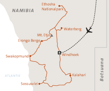 Die Kapazitäten der Hotels, Lodges und Camps in Namibia sind sehr begrenzt. Überbuchungen sind leider nicht ungewöhnlich. Änderungen bleiben ausdrücklich vorbehalten. Der Erlebnischarakter der Reise bleibt davon unberührt.