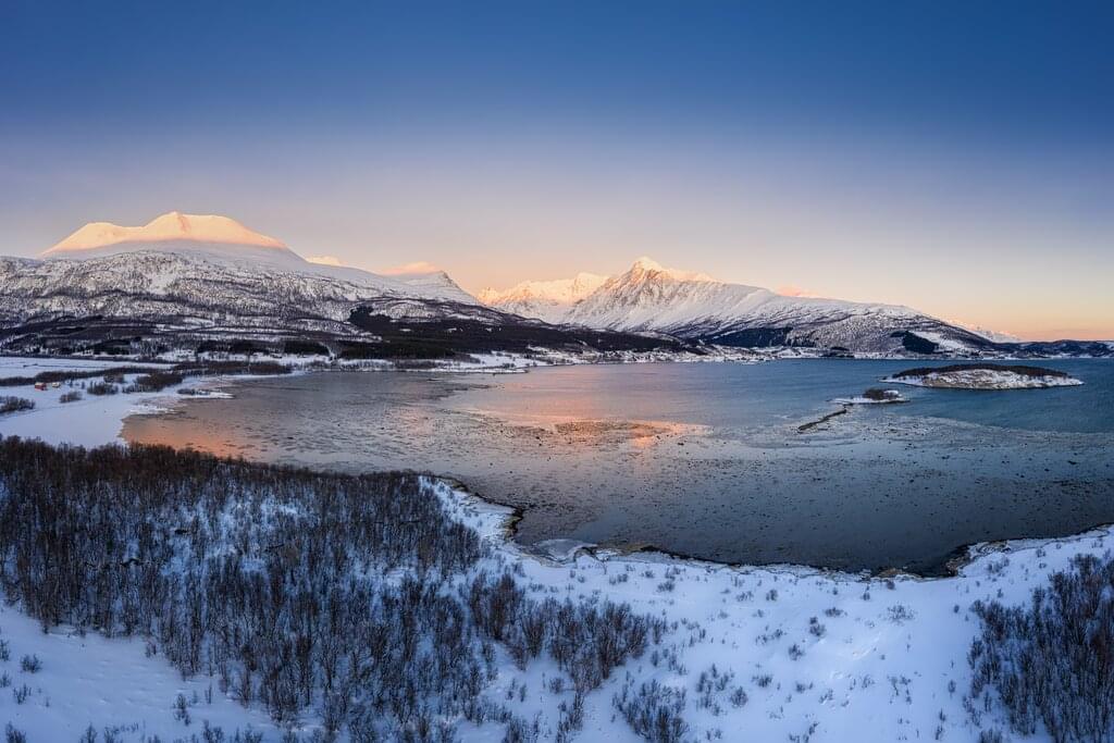 <Flug nach Tromsø. Am Flughafen wirst du von deinem ASI Bergführer abgeholt und es erfolgt ein ca. 2-stündiger Transfer nach Lyngseidet in unsere idyllisch gelegene Unterkunft. Bei einem gemeinsamen Abendessen lernen wir uns kennen.