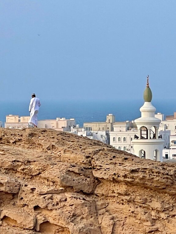 <Gegen Mittag (12:00 Uhr) beginnen wir unsere erste Erkundungstour in Maskat. Vor dem Palast des Sultans halten wir inne und bestaunen die prachtvolle Fassade, die nur offiziellen Anlässen vorbehalten ist. Anschließend wandern wir auf dem Riyam Trek durch das Gebirge von Muttrah. Von oben eröffnet sich ein fantastischer Blick über den tiefblauen Hafen mit seinen traditionellen Dhaus und den weißen Häusern der Stadt. Der Weg endet direkt im Souk von Muttrah, wo wir durch enge Gassen schlendern, den Duft von Weihrauch und Gewürzen in der Nase und funkelnde Lampen über uns. Am Abend fahren wir zurück ins Hotel.