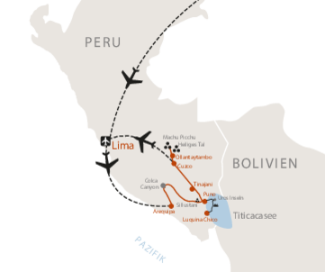Ob das mystische Machu Picchu, die Ruinen von Sillustani oder die indigene Kultur der Inseln am Titicacasee – das Hochland Perus beherbergt zahlreiche magische Geheimnisse: wandernd auf den farbenprächtigen Regenbogenbergen, durch die eindrucksvollen Ruinen von Maras und Moray, oder zu Gast bei einer indigenen Familie des Titicacasees. Die Highlights Perus, kombiniert mit authentischen Erlebnissen abseits der Touristenpfade, vervollständigen unser Bild dieses faszinierenden Landes inmitten der majestätischen Anden.