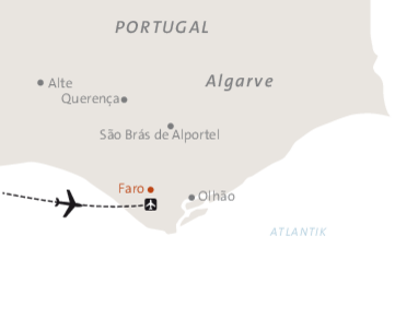 <Flug nach Faro. Am Flughafen wirst du von einem ASI Vertreter abgeholt und in das Hotel gefahren.