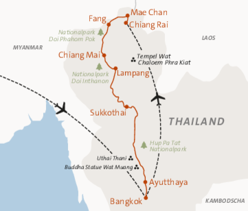 Wir entdecken den Norden Thailands: grüne Berge, sanfte Hügel und idyllische Dörfer erwarten uns. Auf unseren Wanderungen durch unberührte Landschaften bestaunen wir jahrhundertealte Tempel, tauchen in die Kultur und Spiritualität dieser faszinierenden Region ein und erkunden subtropische Flusslandschaften. Wir erleben das authentische Thailand hautnah: kochen mit Einheimischen, entdecken versteckte Winkel der Städte und lassen uns von der Herzlichkeit der Menschen verzaubern. In Bangkok erwartet uns ein lebendiges Kontrastprogramm: prächtige Paläste, buddhistische Tempel und geschäftige Märkte zeigen die Vielfalt der Hauptstadt. Eine Reise, die Natur, Tradition und urbanes Flair perfekt verbindet – Thailand von seiner schönsten Seite.