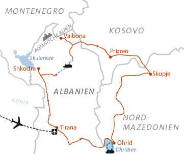 Noch ist der Balkan anders – unbekannt und ungeschminkt. Die Länder Albanien, Kosovo und Nordmazedonien zählen zu den Geheimtipps unter Reisenden. Wir erkunden die vielfältigen Balkanländer mit unentdeckten Regionen, einer atemberaubenden Natur, mittelalterlichen Städten, abgelegenen Bergtälern und geschichtsträchtigen Orten. Die Städte Tirana, Skopje und Prizren warten darauf, entdeckt zu werden, und die schönen Nationalparks sowie das Valbona-Tal laden zu Spaziergängen ein. Die Bootsfahrt auf dem Koman-Stausee und der Besuch des Ohridsees sind unvergessliche Erlebnisse. Naturerlebnisse und kulturelle Höhepunkte, aber auch einige Geheimtipps erwarten uns auf dem Balkan.