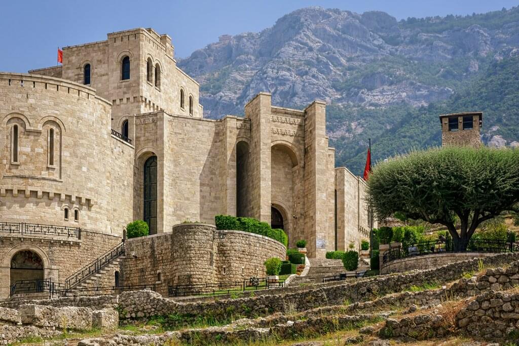 <Heute machst du einen halbtägigen Ausflug in das Bergdorf und die ehemalige albanische Hauptstadt Kruja. Kruja war die letzte Hochburg von Skanderbegs (dem albanischen Nationalhelden) Armee, bevor die Osmanen das ganze Land übernahmen. Es bleibt genügend Zeit, um die Zitadelle und den berühmten Basar zu erkunden. Vielleicht besuchst du auch das ausgezeichnete ethnografische Museum, das sich in der Festung befindet. Nach dem Mittagessen fährst du zurück nach Tirana. In Tirana gibt es eine Vielzahl von Museen. Das Nationale Geschichtsmuseum darfst du nicht verpassen - achte auf das riesige Mosaik an der Fassade, das die Entwicklung der Geschichte Albaniens darstellt. Die Hauptsehenswürdigkeit in Tirana ist die Et'hem Bey Moschee, die direkt auf dem Hauptplatz der Stadt steht. Während der kommunistischen Herrschaft war die Moschee geschlossen, doch 1991 wurde sie wieder als Gebetsstätte genutzt. Zehntausend Menschen nahmen an der Wiedereröffnung teil und das Ereignis wurde als Meilenstein für die Wiedergeburt der Religionsfreiheit in Albanien angesehen. Derzeit werden in der Moschee umfangreiche Renovierungsarbeiten durchgeführt, aber du kannst dir trotzdem die Fresken im Außenbereich und im Säulengang ansehen, die Bäume, Wasserfälle und Brücken darstellen - Motive, die in der islamischen Kunst selten zu sehen sind. -