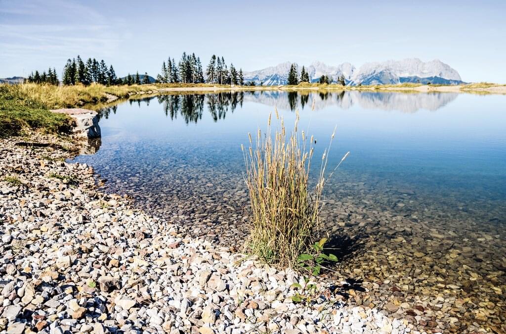 <Heute steht die Loferer Alm auf 1.425 Metern im Mittelpunkt unserer Wanderung. Von der Bergstation steigen wir auf einem gemächlich ansteigenden Weg auf, der von zahlreichen Alpenblumen und weiten Wiesenflächen begleitet wird. In angenehmem Tempo erreichen wir das Grubhörndl (1.747 m), wo sich ein herrlicher Rundblick auf die Gipfel der Loferer Steinberge, der Berchtesgadener Alpen und des Steinernen Meers eröffnet. Auf dem Rückweg kehren wir auf einer bewirtschafteten Alm ein und genießen eine wohlverdiente Rast. Anschließend führt uns der Weg entlang des Wasserfallweges hinunter bis zur Mittelstation der Loferer-Alm-Bahn.