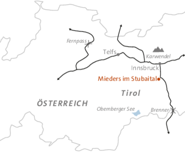 Der Stützpunkt ist perfekt mit der Bahn erreichbar. Fernverkehrszüge kommen von allen größeren Städten nach Innsbruck. Von dort fährt man mit der S-Bahn 20 Minuten nach Matrei. Das Hotel befindet sich direkt gegenüber vom Bahnhof Matrei am Brenner.
