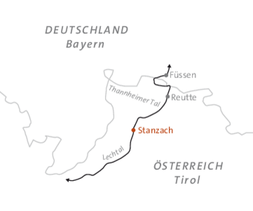 <Nach dem Frühstück steigen wir vom Hotel aus auf die Stabalm. Oben angekommen können wir uns einen Überblick über das Lechtal verschaffen. Zurück am Talboden in Elmen geht es dann mit dem Bus wieder nach Stanzach.