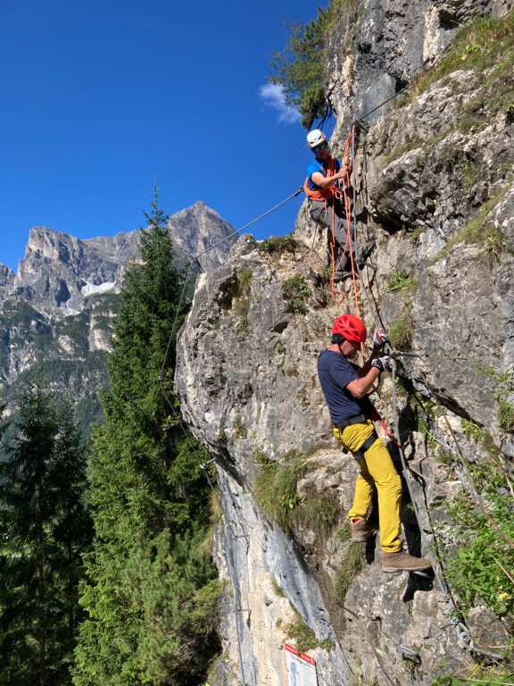- Leihausrüstung (Anseilgurt, Klettersteigset, Steinschlaghelm)