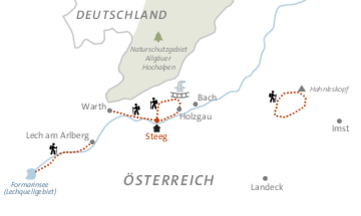 Am Anreisetag Begrüßung um 18:30 Uhr in der Hotellobby: Design & Kräuterhotel Hauserei, Dickenau 14, 6655 Steeg, Tel. +43 5633 5644. Bei unerwarteter Verspätung bitten wir dich, über diese Telefonnummer mit dem ASI-Bergwanderführer Kontakt aufzunehmen.