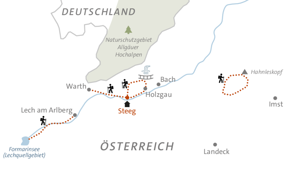 Die Etappe zeigt einmal mehr den einzigartigen Charakter des Lechs – ursprünglich, unverfälscht und kraftvoll. Ein genussvoller Wandertag, der die Schönheit des Tales eindrucksvoll erlebbar macht.