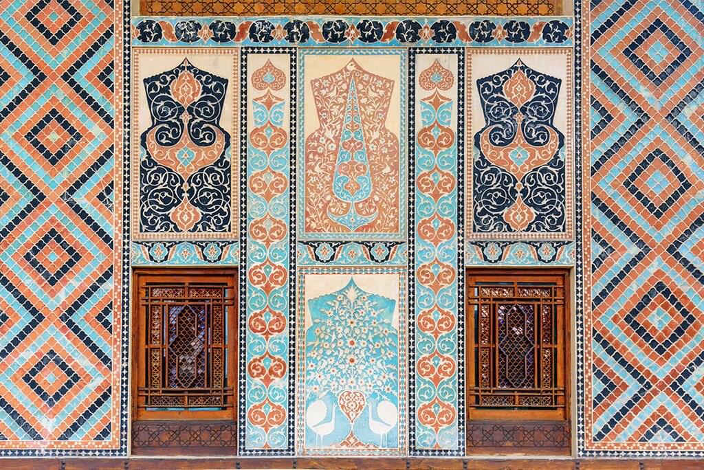 <Besuche am Morgen zuerst den Palast der Sheki Khans. Die Wände des Palastes sind mit Jagd- und Kriegsszenen bemalt und zeigen beeindruckende Buntglasfenster. Anschließend besuchst du eine Werkstatt, in der Shebeke - Glasfenster, die ohne Klebstoff oder Nägel hergestellt werden - von einheimischen Meistern mit überlieferten Fähigkeiten hergestellt werden. Anschließend fährst du mit einem öffentlichen Bus nach Kish, um die spitzen Türme einer Kirche zu besichtigen, die zu den ältesten der Christenheit gehört und etwa 1700 Jahre alt sein soll. Der Rest des Nachmittags steht dir zur freien Verfügung, um Sheki zu entdecken. Du kannst die beeindruckende traditionelle Architektur zu Fuß erkunden. Vielleicht hältst du an, um Tee zu trinken und Halva zu probieren (ein Gebäck aus Zucker, Haselnüssen, Koriander und Reismehl, das in einer Wassermühle gemahlen wird). -