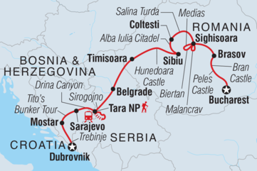 Entdecke die Schönheit und Geschichte des Balkans auf dieser 18-tägigen Tour, die dich von Dubrovnik in Kroatien durch Bosnien und Herzegowina und das lebhafte Nachtleben von Belgrad in Serbien, durch das Herz von Siebenbürgen und weiter nach Bukarest führt. Unterwegs probierst du ausgezeichnete Weine, erfährst etwas über die Kriegsjahre, hältst an der berühmten Alten Brücke von Mostar, entdeckst die spektakuläre Landschaft des Tara-Nationalparks und durchquerst mittelalterliche Festungen und Märchenschlösser. Diese Tour kombiniert Kampfgebiete, Berglandschaften, Bunker und Bars und verbindet die Vergangenheit mit der Gegenwart zu einem Abenteuer, das alle Sinne anspricht.