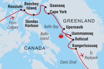 Die Nordwestpassage hat Polarforscher seit Jahrhunderten in ihren Bann gezogen. Auf dieser 17-tägigen Reise gehst du an Bord der Ocean Explorer und erkundest diese faszinierende Wasserstraße mit einer unglaublichen Auswahl an Abenteuern außerhalb des Schiffes mit Zodiacs und Hubschraubern. Auf der Fahrt durch die kanadische Arktis reist du zurück in die Zeit der Erforschung der Arktis und besuchst Gebiete, die seit Jahrtausenden die Heimat der Inuit sind. Du siehst alle Höhepunkte der kanadischen Arktis und der grönländischen Westküste und hältst bei Inuit- und grönländischen Gemeinden. Besuche das UNESCO-Weltnaturerbe Ilulissat-Eisfjord, dessen Sermeq-Kujalleq-Gletscher riesige Eisberge kalbt, und halte die Augen nach den Meeresbewohnern offen, die in diesen rauen, abgelegenen Landschaften zu Hause sind - halte die Augen nach Walen, Walrossen, Moschusochsen und Eisbären offen.