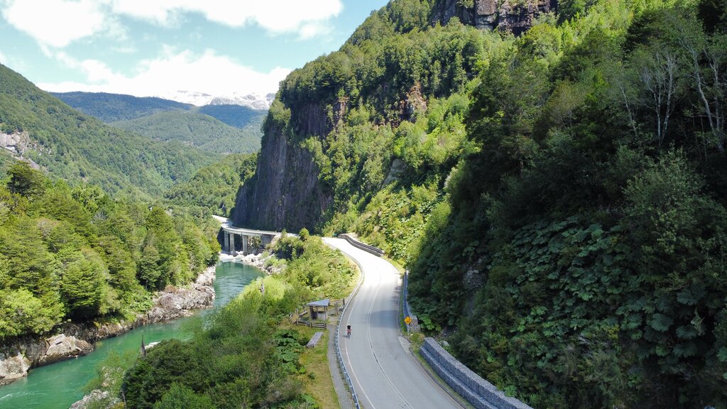 <Die Route beginnt mit einer wunderschönen Landschaft, umgeben von heimischen Wäldern und mit Blick auf den Yelcho-Gletscher. Wir werden den Moraga-Hang bis zum Pass in Angriff nehmen, wo die Abfahrt beginnt und wir die beeindruckenden Spuren bewundern können, die die verheerende Überschwemmung von Villa Santa Lucía (2017) hinterlassen hat, ein Ereignis, das die Landschaft der Stadt und das Leben ihrer Bewohner radikal verändert hat. Wir fahren weiter auf der asphaltierten Straße, die an den Flüssen Frío und Palena entlangführt, und gelangen in die Region Aysén, wo wir in Villa Vanguardia ein schönes Picknick genießen und schließlich diese lange Etappe in der Stadt La Junta beenden.