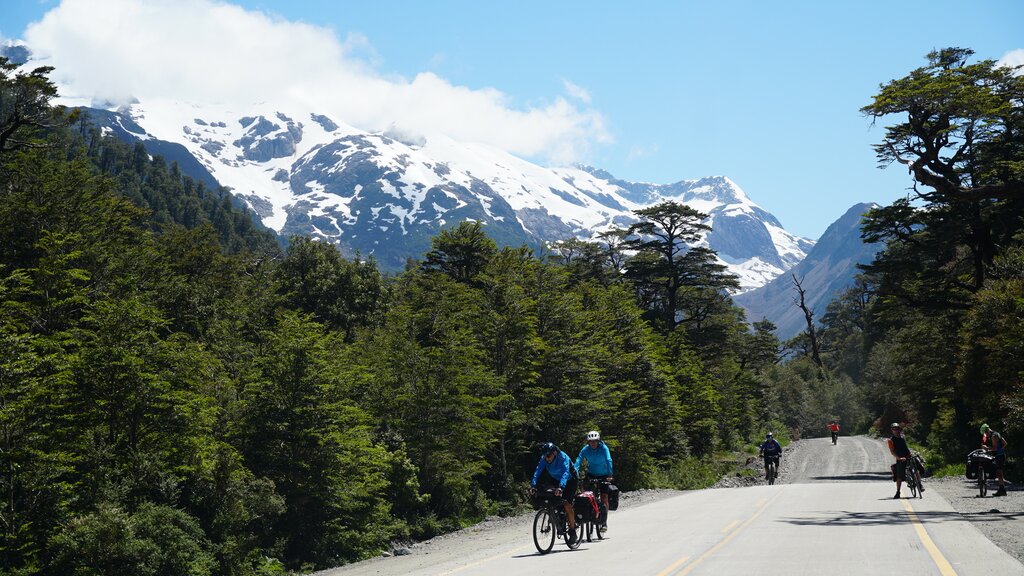 Puerto Varas – Puerto Tranquilo (600 km) – Wir beginnen unsere Route mit Fährfahrten über Flussmündungen und Fjorde, die uns mit verschiedenen Orten der Carretera Austral verbinden. Diese Radtour lädt Sie ein, die spektakulärsten Landschaften der Carretera Austral Norte kennenzulernen. Wir beginnen die Reise mit einer Fahrt durch die Reloncavi-Mündung und die bimodale Route und radeln inmitten von Nationalparks, Bergen, Seen, Flüssen, Fjorden, Gletschern und Urwäldern der Seenregion und Aysén. Sie besuchen mehr als 10 Orte, darunter Hornopirén, Chaitén, Villa Santa Lucía, La Junta, Puyuhuapi, Mañihuales, Puerto Aysén, Coyhaique, Cerro Castillo und Puerto Tranquilo. Wir übernachten in den besten Unterkünften und genießen den bestmöglichen Service in dieser abgelegenen Region, kombiniert mit Abenteueraktivitäten und dem Kennenlernen der Geschichte, Traditionen und lokalen Kultur. Diese Route führt über asphaltierte Abschnitte und Schotterstraßen und birgt einige Herausforderungen wie die Hänge von Moraga und Queulat sowie den Cerro Castillo-Pass. Entdecken Sie spektakuläre Sehenswürdigkeiten wie den Pumalín Douglas Tompkins Nationalpark und seine Geschichte hinter der weltweit größten Landspende für Naturschutzzwecke, uralte Alerce-Bäume, den Yelcho-Gletscher, den Palena-Fluss, den Risopatrón-See, den majestätischen Hängegletscher im Queulat-Nationalpark, die Aussicht im Cerro Castillo-Nationalpark und die Marmor-Kapellen. Verpassen Sie nicht dieses großartige Erlebnis, bei dem Freundschaften, multikulturelle Begegnungen zwischen Teilnehmern und Gastgemeinden sowie die Möglichkeit, auf nachhaltige Weise zu reisen und einen Beitrag zu leisten, entstehen können. Nutzen Sie diesen einzigartigen Moment für ein transformatives und unvergessliches Radfahrerlebnis in Patagonien, Chile.