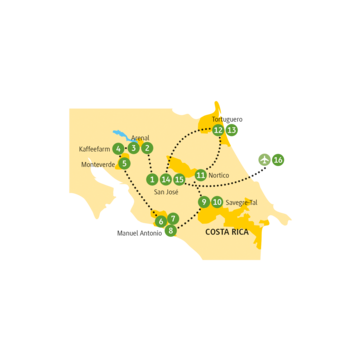 <Bereit für das Abenteuer Costa Rica? Du fliegst nach San José, in die quirlige Hauptstadt Costa Ricas. Nach der Landung erwartet dich deine Reiseleitung voller Vorfreude, um dir die Heimat in den nächsten zwei Wochen näherbringen zu dürfen.
