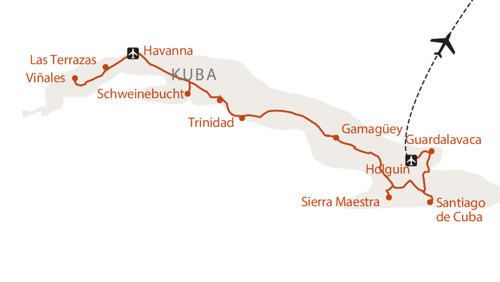 Der Karibikstaat Kuba hat sich aufgrund seiner speziellen Geschichte ein unverwechselbares Flair bewahrt. Farbenfrohe Häuser und liebevoll gepflegte Oldtimer prägen das Bild der Kolonialstädte. Die Einheimischen folgen dem Rhythmus der legendären kubanischen Musik. Die eindrucksvollen Karstfelsen im Viñales Tal, die wilde Bergwelt der Sierra Maestra und Sierra Escambray, idyllische Buchten und karibische Strände bilden eine herrliche Kulisse für unsere Aktivitäten.