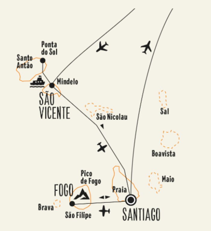 - Inlandsflüge São Vicente–Santiago–Fogo–Santiago