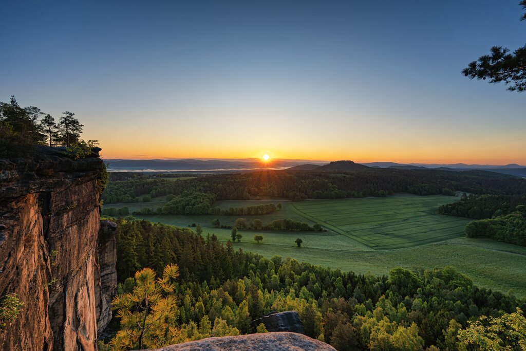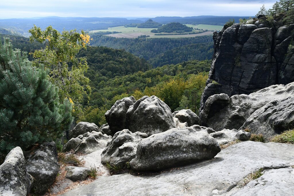 <Wir starten mit kurzem Bustransfer nach Reinhardtsdorf (gültigen Personalausweis nicht vergessen!) und wandern auf Forstwegen und verwunschenen Pfaden vorbei an der Wildpretshöhle zum Großen Zschirnstein (560m) – dem höchsten Berg der Sächsischen Schweiz mit schönsten Ausblicken auf das gesamte Elbsandsteingebirge und dem Zirkelstein. Zurück wandern wir auf Wegen des Fortsteigs vorbei am Böhmischen Tor – mitten darin die Grenze zu Tschechien entlang des Gelobtbachs nach Schöna, wo wir mit der Fähre nach Hrensko/Tschechien übersetzen und mit dem Wandersschiff der Elbe entlang zurückfahren.