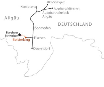 - Oder bis Bahnhof Fischen im Allgäu. Weiter mit Regionalbus 44 bis Bolsterlang-Ortsmitte. Von hier ca. 9 Minuten Gehzeit zum Treffpunkt.